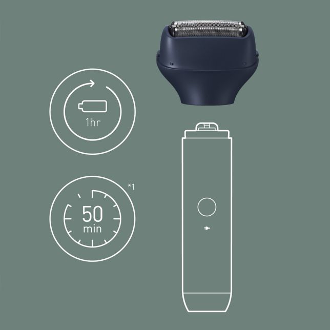 ER-CSF1 se može koristiti u kombinaciji s glavnim jedinicama ER-CBL1 (litijum-jonska baterija) i ER-CBN1 (Ni-MH).* Glava brijača u kombinaciji s ručkom s litijum-jonskom baterijom pruža vam do 50 minuta rada** uz samo jedan sat punjenja. Ako se baterija isprazni, možete se sređivati još oko 5 minuta nakon super-brzog punjenja od 3 minute.