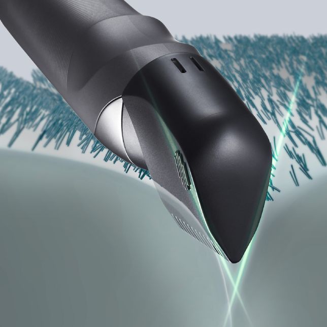 Želite na siguran način ukloniti neželjene dlačice i postići vrhunski glatke rezultate? Naša posebno dizajnirana glava u obliku slova „V“ može učinkovito ukloniti neželjene dlačice čak i na najteže dostupnim mjestima dok kožu štiti dvomilimetarski dodatak.