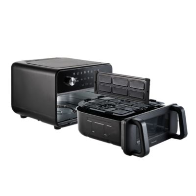 Koszyk o pojemności 9,6 litra jest wystarczająco duży, aby przygotować w nim pizzę o średnicy 30 cm, całego kurczaka lub więcej potraw, tak jak lubisz. Pomieści nawet prostokątne naczynie żaroodporne/do lasagne. Można też użyć wyjmowanej przegrody, aby podzielić koszyk i stworzyć dwie strefy gotowania, z których każda może być ustawiona na indywidualną temperaturę i czas. Dzięki temu możesz przygotować cały posiłek za jednym razem, na przykład mięso, rybę i warzywa.